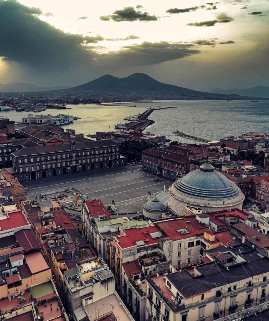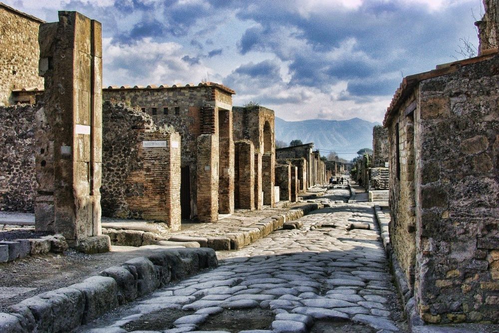 Pompeii is known for its ancient city buried in 79 AD. from the eruption of Vesuvius. The ruins include the Villa dei Misteri with frescoes and the Roman amphitheater. In the city, the Sanctuary of the Blessed Virgin of the Rosary has mosaics and a large dome.